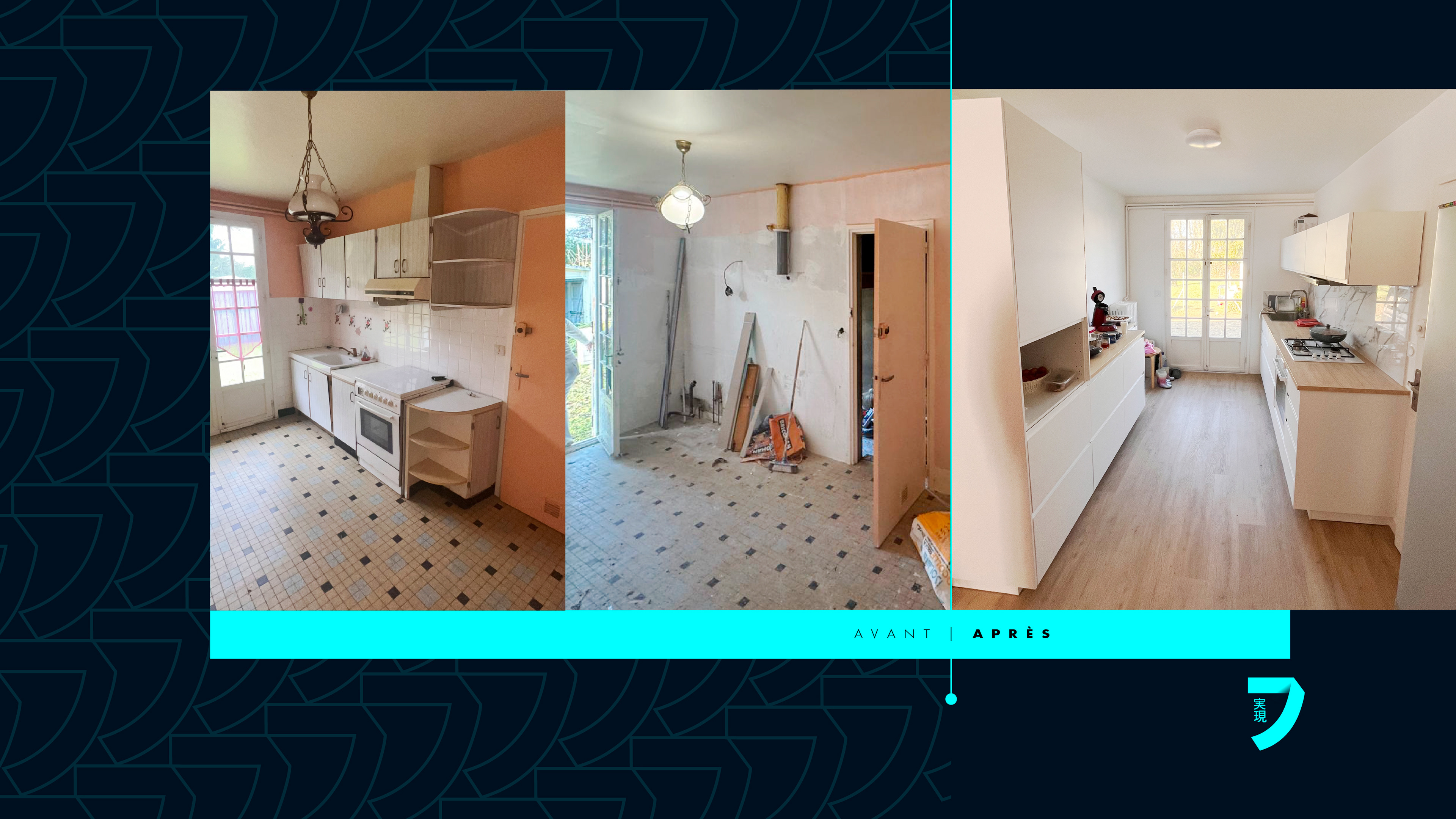 Redonner une seconde jeunesse à une maison de famille, contruite en 1969 «et dans son jus» après une succession. Création d’une cuisine équipée ouverte sur le salon qui respecte. La contrainte d’origine d’être la pièce d’entree dans la maison